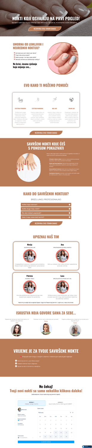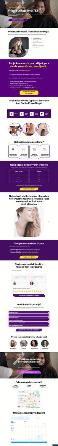 Stranica će biti dizajnirana s ciljem da privuče pažnju vaše ciljne publike i vodi ih kroz jasan proces do rezervacije termina u vašem salonu.